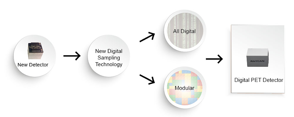 Digital PET detector is an advanced scintillation detector that directly outputs digital pulses. By utilizing digital signal processing (DSP) the Digital PET BDM creates a new class of nuclear imaging technology.