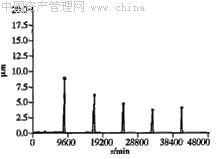 撫順石化公司石油二廠一臺轉(zhuǎn)速為8100r/min的氣壓機組白于壓縮機軸彎曲振動逐漸升高,壓縮機的工頻振幅明顯增加(圖1)。經(jīng)過動平衡校驗后,同頻振動幅值又恢復(fù)到正常水平(圖2)。