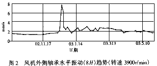 此次振動故障原因在電機(jī)處,而振動最突出的卻在風(fēng)機(jī)處。若按常理,頭痛醫(yī)頭,腳痛醫(yī)腳,則無法對癥消除故障,這正是狀態(tài)監(jiān)測診斷技術(shù)的優(yōu)勢所在,尤其對區(qū)分變速機(jī)械的振動原因很有用。