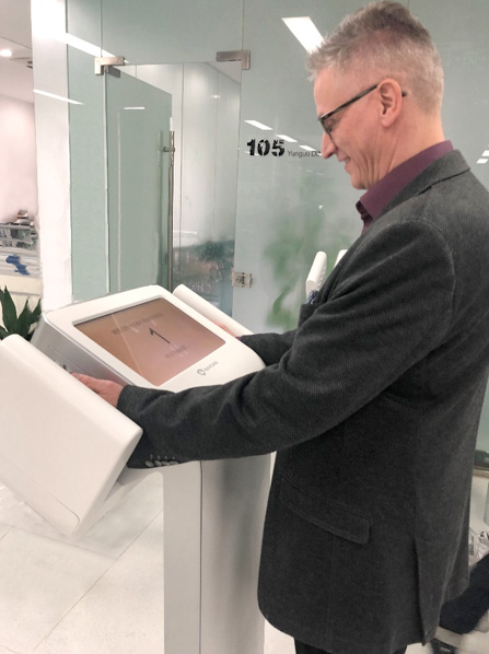 Juhani 主任體驗(yàn)我公司新研發(fā)的手足沾污儀